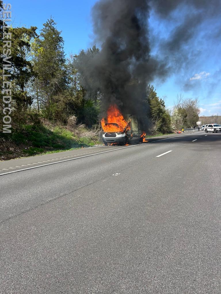 We were requested to assist the Trumbauersville Fire Company at an automobile fire in the southbound lanes of the 309 bypass in West Rockhill Township. The fire occurred just before the Lawn Avenue exit. With the Pennsylvania State Police shutting down all traffic, Rescue 27 traveled in the opposite direction to reach and extinguish the fire. Engine 58 arrived shortly afterward and assisted with extinguishment.
